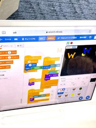 当事業所での支援内容の一つ「スクラッチプログラミング」の機能には「共有 …