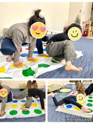 ツイスターゲームが導入されました! 冬の間、体を動かす機会が少なく、体 …